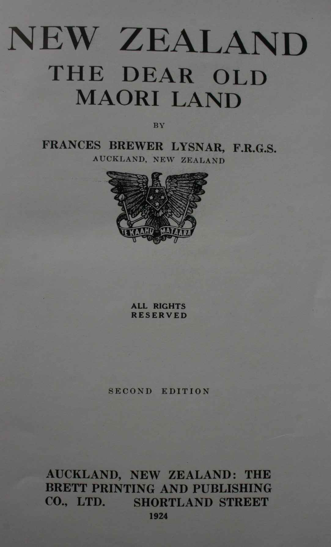 Publisher: The Brett Printing & Publishing Co., Auckland, 1924. Second Edition.