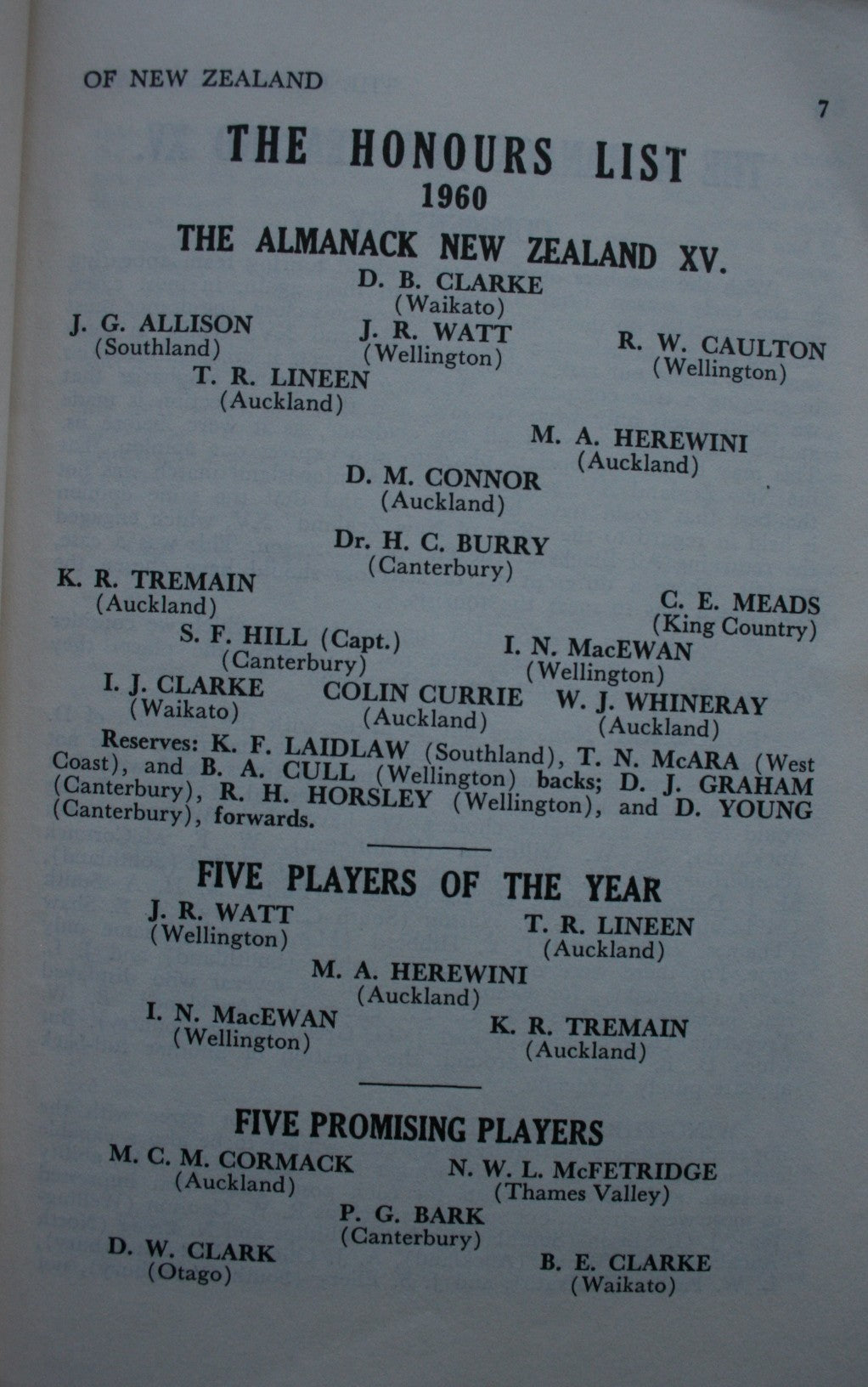 The Rugby Almanack of New Zealand 1961. New Zealand Team In South Africa.